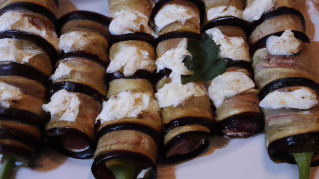 Tranches d'aubergines grillées farcies au fromage blanc.