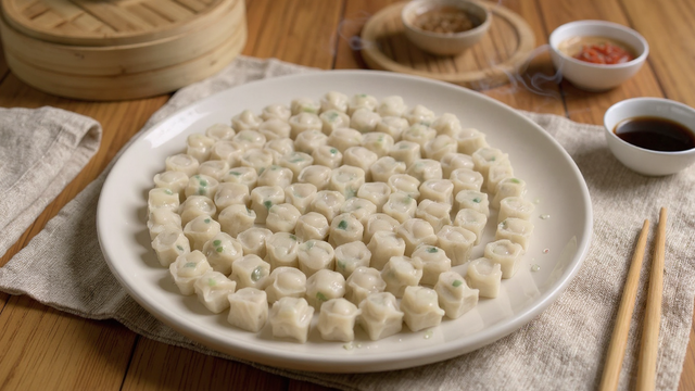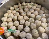 Hachez la viande de porc, mettez-la dans un bol, ajoutez le sel, le poivre, la poudre de manioc et mélangez. Ajoutez les oignons nouveaux ciselés (la partie blanche et la partie verte) et mélangez.