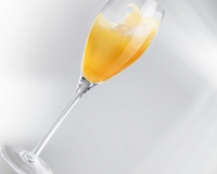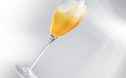 Servir dans une coupe à champagne et terminer avec du champagne.