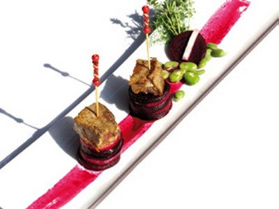 - 6Dresser la viande à côté de la betterave et du navet avec un filet de vinaigre Balsamique.