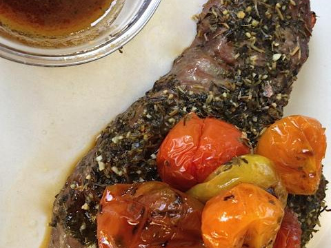 Préchauffer votre four à 200° C. Dans un plat avec une grille incorporée, déposer la pièce d'agneau, ajouter un filet d'huile d'olive, une persillade, saler et poser quelques petites tomates sur la viande. Laisser cuire pendant 20 minutes, puis laisser reposer 5 minutes, servir avec une purée de pommes de terre.