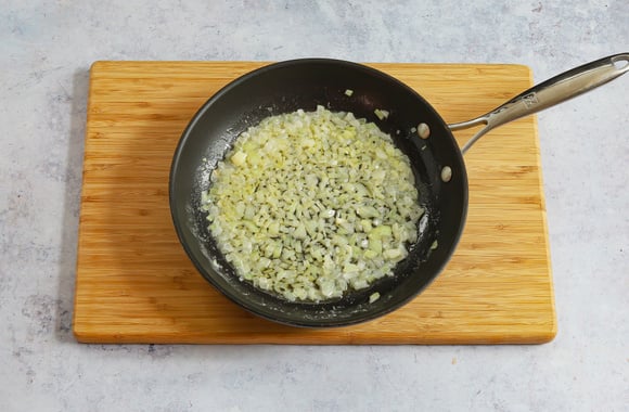 3Dans une sauteuse, faites chauffer le ghee puis faites revenir l'oignon haché pendant 2 minutes.