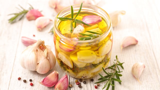 L'ail confit à l'huile d'olive est une préparation toute simple qui transforme complètement ce condiment. En cuisant doucement, les gousses perdent leur piquant pour devenir tendres, tartinables et légèrement sucrées. C'est une recette très pratique à garder sous la main pour parfumer vos plats. On l'écrase sur du pain grillé, on l'intègre dans une purée ou une sauce, et on réutilise l'huile infusée pour assaisonner des salades. Une excellente méthode, économique et anti-gaspi, pour conserver vos têtes d'ail plus longtemps.