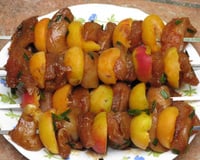 Bien rincer de la marinade faire des brochettes en alternant la viande l'ail les poivrons.