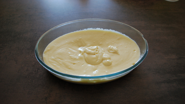 4Dans une casserole, mettre le beurre et la crème à chauffer. Ajouter peu à peu la purée, remuer avec une cuillère en bois, en remuant sans cesse.