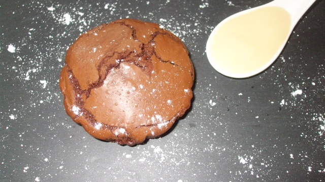 Dessert gourmand de ce midi, l' Amandine au chocolat recette simple et peu coûteuse, avec une crème anglaise on c'est régalé.