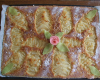 Étaler la pâte sur 3mm d'épaisseur et foncer un mouler à tarte. Piquer le fond de tarte avec une fourchette. La garnir de crème d'amandes. Y disposer les poires couper en lamelles et les amandes effilées.