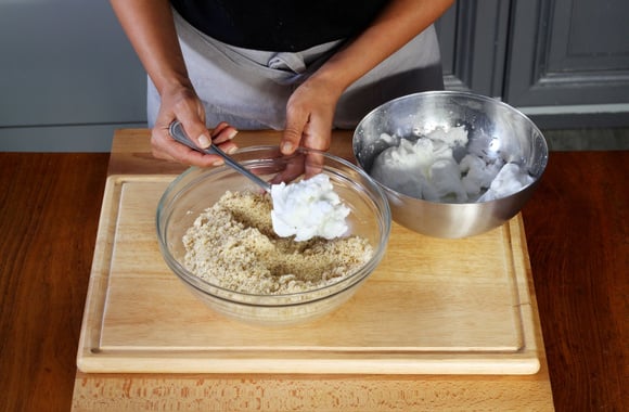 4Ajoutez les blancs en neige à la poudre de noix.
