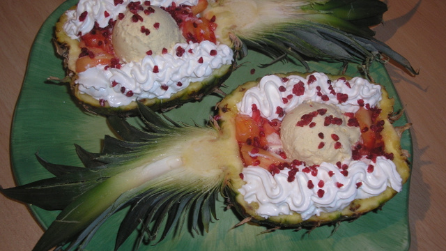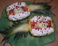 Dans un grand plat, placez les 2 moitiés d'ananas.