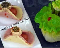 Avec un emporte pièce cannelé (j'ai utilisé celui des sablés).Découper la mortadelle et le fromage de la même dimension puis les superposer l'un sur l'autre, mettre un saucisson au milieu et rassembler les deux côtés fromage mortadelle avec un cure dent. Pour finir mettre dessus un fromage apérivrais.