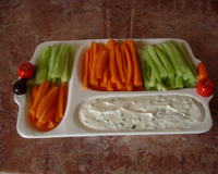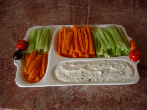 Prendre des légumes crus : chou, endives, carottes, concombres, etc... sauce fromage blanc 0 %, ciboulette, herbes fraîches, menthe. Mélanger, c'est prêt !