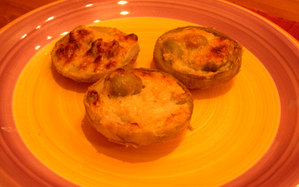 Il s'agit de fonds d'artichauts farcis avec de la ricotta, du parmesan, du basilic et des olives noires. Recette simple qui met en valeur de bons produits aux accents du sud...à déguster tièdes ou froids