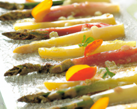 Ensuite épluchez les asperges et les cuire à la vapeur pendant 10 min.