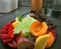 Présenter les fruits dans une assiette. Mélanger les fruits pour varier les couleurs.