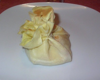 - Refermez les crêpes avec des brins de ciboulette ou de la ficelle alimentaire de façon à former de belles aumônières.