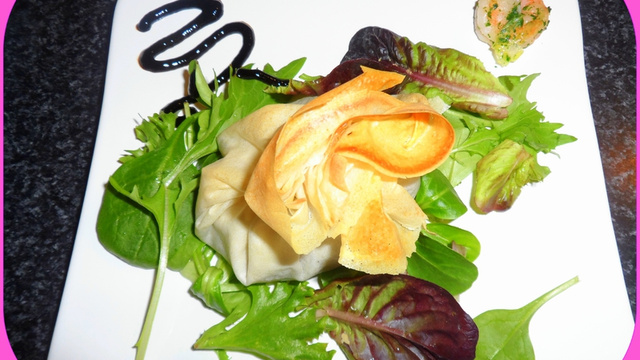 Servir avec une salade mâche assaisonnée de vinaigrette au basilic.