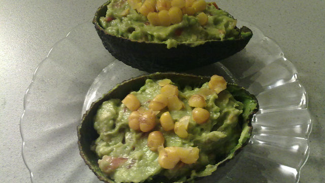 Placer la chair d'avocat mélanger aux autres ingrédients dans les pelure d'avocat.