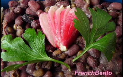 L'azuki est un haricot très commun au Japon. Son goût est assez sucré et il est traditionnellement utilisé pour confectionner des desserts.Le soja vert, c'est le haricot mungo.Une association originale et nutritive.