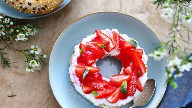 Coupez les fraises en 4 puis disposez-les sur la ricotta.