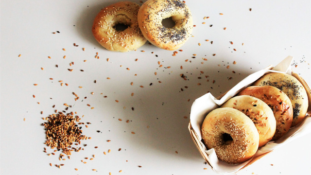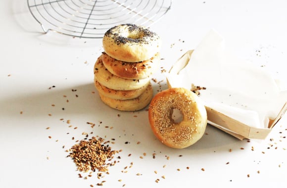 On peut manger les bagels encore légèrement tièdes, ils sont parfaits. On peut aussi les couper en deux et les faire légèrement griller côté mie. Sinon, on hésite pas à les congeler, pour en avoir sous le coude! Vous pouvez également tester plein d’autres garnitures, voici quelques idées: pastrami (of course!), bacon, viande des grisons, thon, cheddar, mozzarella, tomates séchées, poivrons, oignons, pesto ou encore différentes confitures, sirop d’érable, beurre de cacahuète…