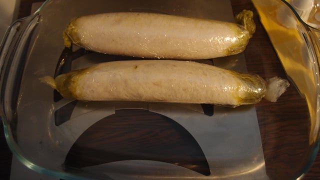Cuire les ballottines sur une plaque à pâtisserie à 100°C durant 20 min ou 65°C durant 35 min.