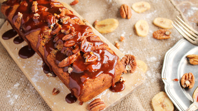 Un banana bread en version vegan avec, en plus de d'habitude, des noix de pécan et un glaçage au sirop d'érable ... Cette version est juste une tuerie !