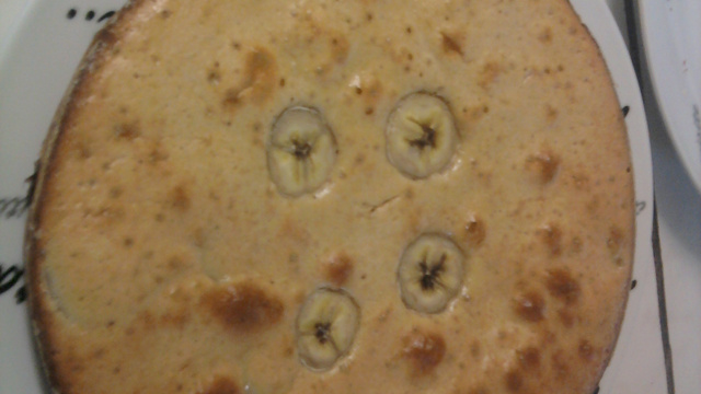 Dans un moule a gâteau beurrer et fariner le fond. Mettez un peu de pâte au fond, appliquer les tranche de banane au dessus, puis faite des couche successive de pâte et de banane jusqu'à t'en qu'il y en ai plus.