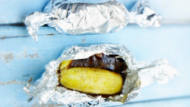 Amateurs de bananes, vous cherchez une idée gourmande à préparer pour clôturer en beauté votre prochain barbecue ? Dans un premier temps, vous allez découper vos bananes dans le sens de la longueur. Ensuite, vous allez les répartir dans des feuilles de papier aluminium. Puis, vous allez faire fondre une tablette de chocolat au micro-ondes ou bien au bain-marie. Vous pouvez choisir la variété que vous aimez ou que vous avez en stock : noir, au lait, praliné. Ensuite, vous allez verser ce chocolat fondu sur les bananes. Après avoir formé des papillotes, vous allez faire les faire cuire quelques minutes au barbecue. Pour donner un peu de croquant, vous pouvez même rajouter des fruits secs (amandes, pistaches, noisettes). C'est un délice !