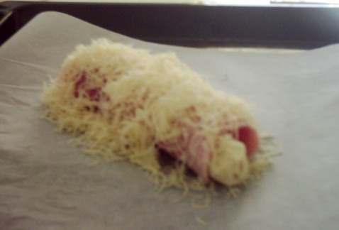 - 2Les déposer ensuite sur les tranches de jambon avec un peu de gruyère et les rouler.