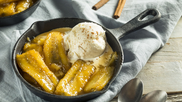 Pelez les bananes et lorsque la préparation commence à brunir, déposez-les dans votre poêle.