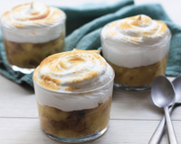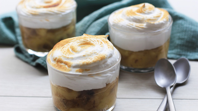 Répartissez les bananes rôties dans 4 ramequins. Recouvrez de meringue italienne en vous servant d’une poche à douille. Brûlez le dessus à l’aide d’un chalumeau de cuisine et servez.