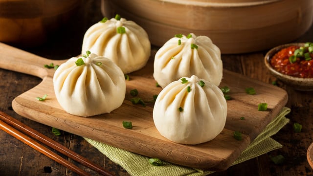 Dégustez les Banh Bao chauds ou tiède avec une sauce épicée ou de la sauce soja.