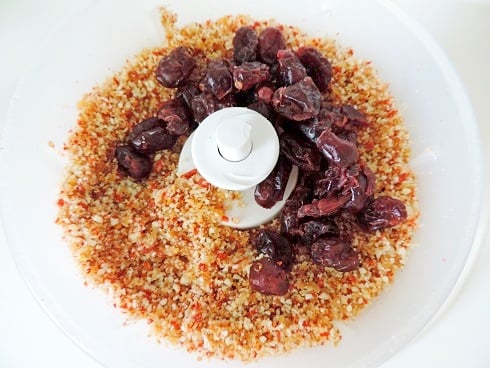 1Dans un robot, mixer les amandes avec les dattes, les cranberries, les baies de goji et la farine de graines germées.