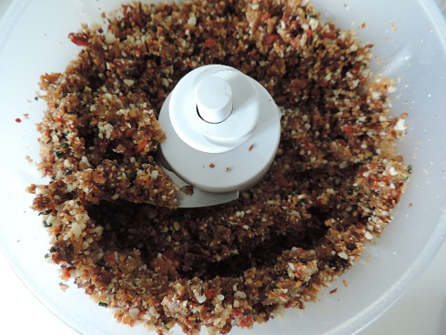 1Placer les baies, figues, noisettes, linette et spiruline dans le bol du mixer et mixer le tout.