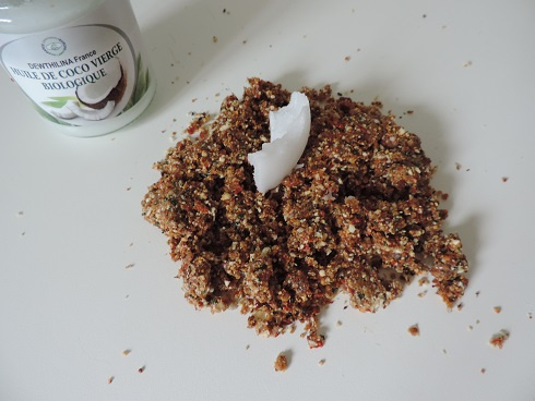 2Débarrasser et ajouter l'huile de coco afin de bien amalgamer le tout.