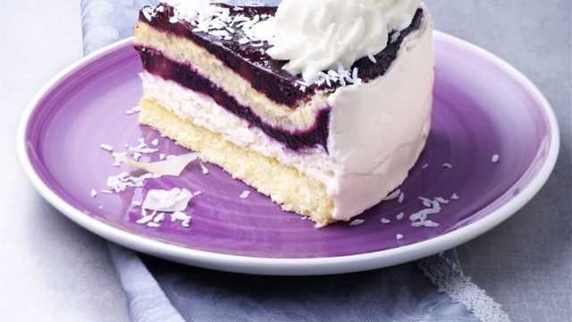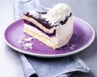 Le duo noix de coco et myrtilles est parfait dans ce dessert.