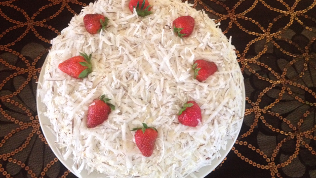Génoise, sirop parumé au malibu, mousse à la noix de coco.