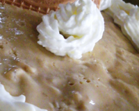 Une crème anglaise au café avec une petit peu de gélatine. Une crème fouetté pour alléger ! Un dessert sympa à partager....