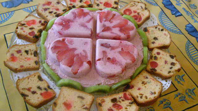 - 4Faire un coulis de fraises avec le reste de fruits.Démouler.Servir nappé de coulis et accompagné de petits gâteaux.