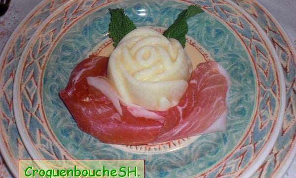 Une petite petite entrée sucrée/salée très bonne et très rafraîchissante, qui fait son petit effet à chaque fois.