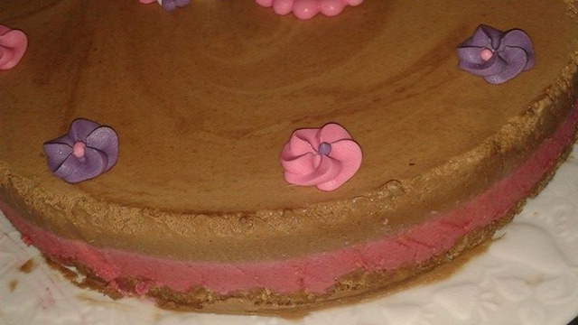 Mettre dans une casserole 5 cl de crème liquide et 100g de choco noir, ajoutez 1 feuille et demie de gélatine. Montez 20 cl de crème liquide en chantilly, et versez le chcolat dessus. Versez sur la mousse précédente et au frais.