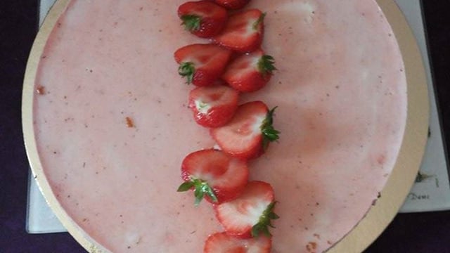 Faire ramollir les feuilles de gélatine. Mixer les fruits,et les feuilles de menthe poivrée, filtrer, puis les chauffer avec le sucre pour y incorporer la gélatine, laisser refroidir. Monter les 600g de crème en chantilly (mettre préalablement le bol du mixeur ainsi que les fouets au congélateur). L’incorporer à la purée de fruit refroidie. A l’aide de votre cercle à entremet couper la génoise afin d’avoir le même diamètre. Sur un plat de service, déposer votre cercle à entremet mettre en premier la génoise coupée. Puis verser la mousse sur la génoise dans le cercle mettre au frais. Puis quand votre miroir est bien pris, faire la déco ajouter quelques fraises fraiches. Démouler puis déguster….