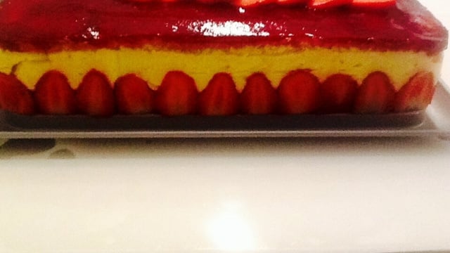Faites bouillir 6cl d'eau avec le sucre dans une casserole. Hors du feu, ajoutez en remuant la gélatine essorée. Puis la purée de fraises.