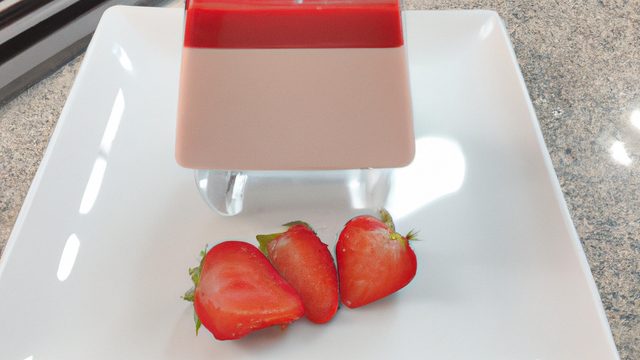 Préparer ensuite le glaçage aux fraises : faire chauffer 200 g de coulis de fraises, y faire diluer une feuille de gélatine . Retirer du feu et laisser tiédir complètement, le coulis doit être presque froid.