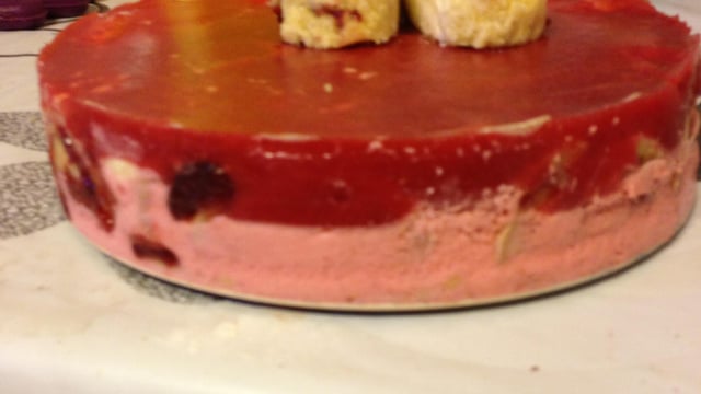 Séparer le b :lancs des jaunes d'oeufs et monter les blancs en neige. Dans un saladier fouetter les jaunes d'oeufs et le sucre. Quand le mélange est jaune ajouter rhum et farine. Mélanger puis incorporez les blancs. Verser la moitié de la préparation sur une plaque de four et faire cuire dans un four préchauffé à 180° entre 10 et 15 minutes. Cuire le reste de génoise de la même façon. Couper une des 2 génoises aux dimensions d'un moule à manquer ou d'un cercle de patisserie. Etaler sur la seconde génoise de la confiture de fraise et rouler. Couper des tranches de 0,5 à 1 cm d'épaisseur. Dresser dans le cercle la génoise puis disposer les morceaux de roule tout autour. - 2