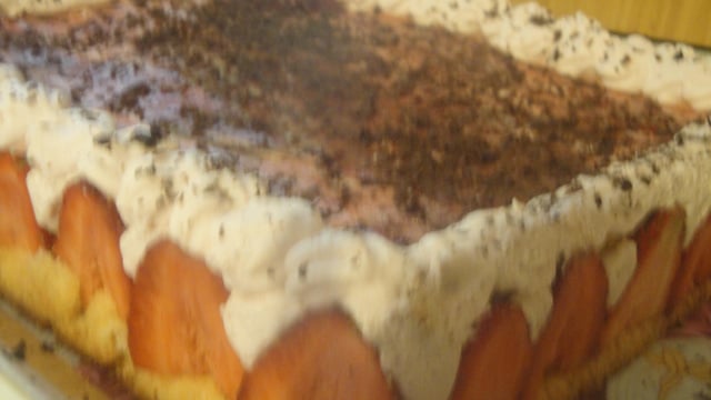Quand la génoise est prête, coupez la en deux, laissez la bien refroidir et ensuite vous pouvez mettre les fraises puis la chantilly. Mettre au frigo pendant une heure. Préparer un autre pot de coulis de fraises avec une autre feuille de gélatine. Procéder comme l'autre du dessus laisser refroidir.
