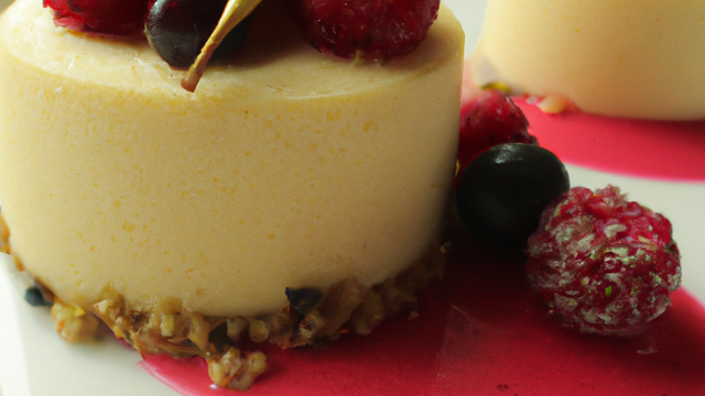 Une jolie mousse bien équilibrée entre le gingembre et la vanille et un miroir aux fruits rouges.