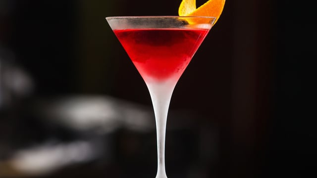 - Dans un verre à mélange, je verse mes ingrédients sur un lit de glace. Je remue avec la cuillère à mélange et je verse dans un verre à cocktail.