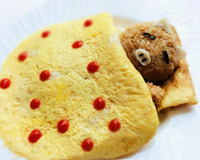 Réaliser une omelette en forme d'oreiller et poser le riz cantonnais à côté.
