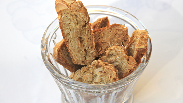 Biscuits croustillants aux amandes effilées. On peut les servir en accompagnement d'une glace.
